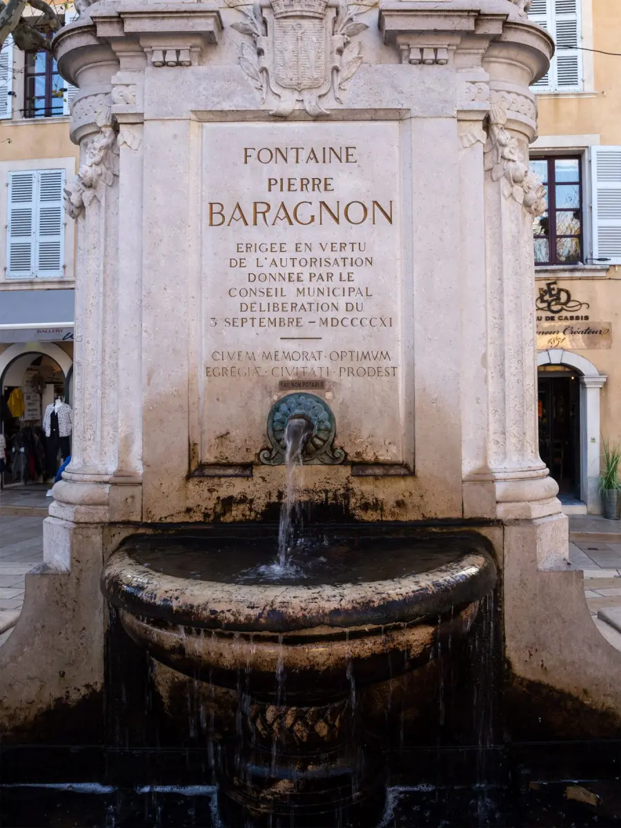 Mais à Cassis, l’eau n’arrive pas avant 1892 et il faut même attendre 1913 pour que soit édifiée la fontaine en hommage à l’homme qui s’est démené pour faire venir l’eau du canal de Marseille à la Ciotat et à Cassis, le conseiller général du canton Pierre Baragnon.