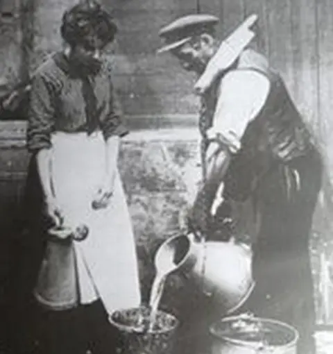 Porteur d’eau, c’était le plus basique des métiers de l’eau et sans doute le plus éreintant, quel que soit le système. Le plus courant était une barre de bois, passée derrière le cou et aux extrémités de laquelle pendaient les seaux. Ce qui permettait d’équilibrer la charge. Mais à raison de 12 litres par seau en moyenne, on imagine la souffrance.